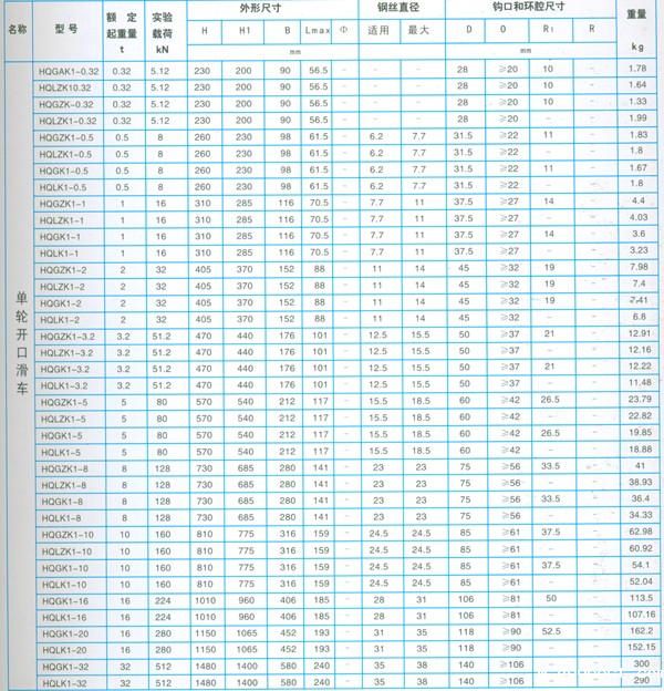 产品规格从0.03-320吨,轮系从单轮至十轮,吊具有吊钩,链环,吊环,吊梁四种,可供用户选择。