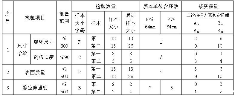 2.3圆环链尺寸检验结果的判定按表一执行。